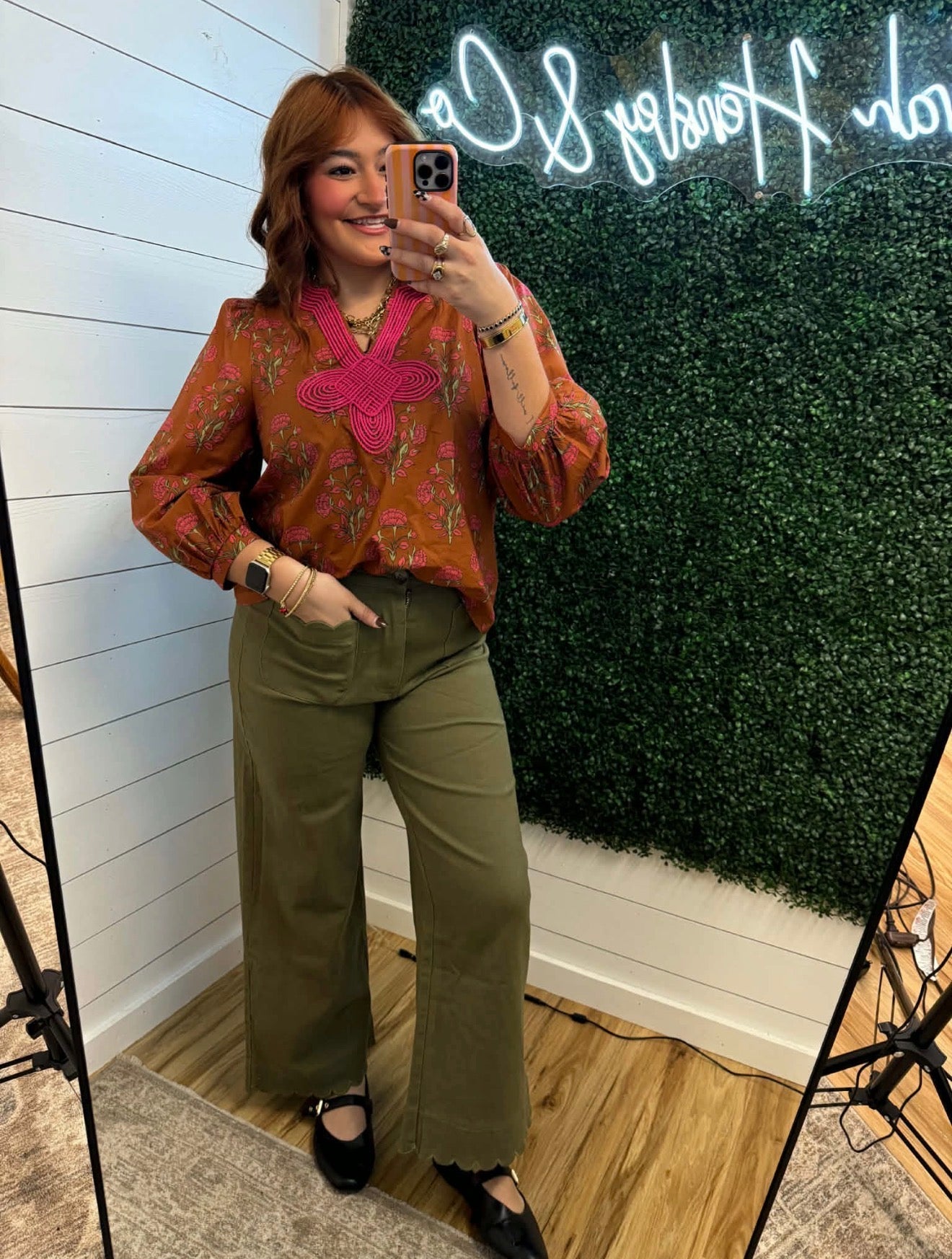 Meet the Fernwood Wide Leg Pants—where comfort meets charming detail 💚